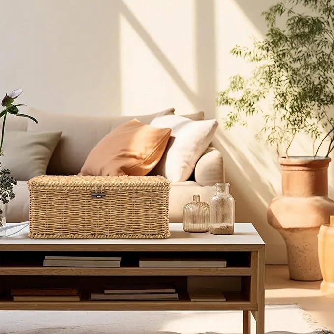 - 【 Handmade Cable Management Box 】 - Keep your space organized with our Durable Rattan Cable Organizer. Designed with two open slots, it effectively manages cords for your TV, computer router, USB hubs, and power strips.