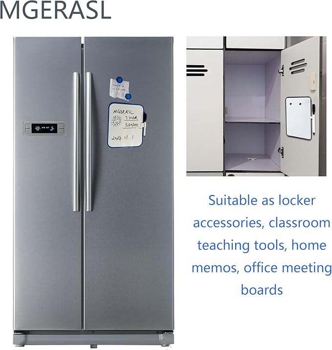 - Applicable to multiple scenarios: MGERASL magnetic whiteboard is designed to be suitable for a variety of environments such as school lockers, homes, offices, etc., and can meet the different needs of students and office workers. Whether it is memos, plans, study, meetings or creative drawings, it can be used flexibly