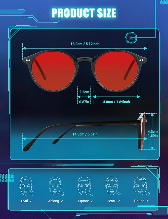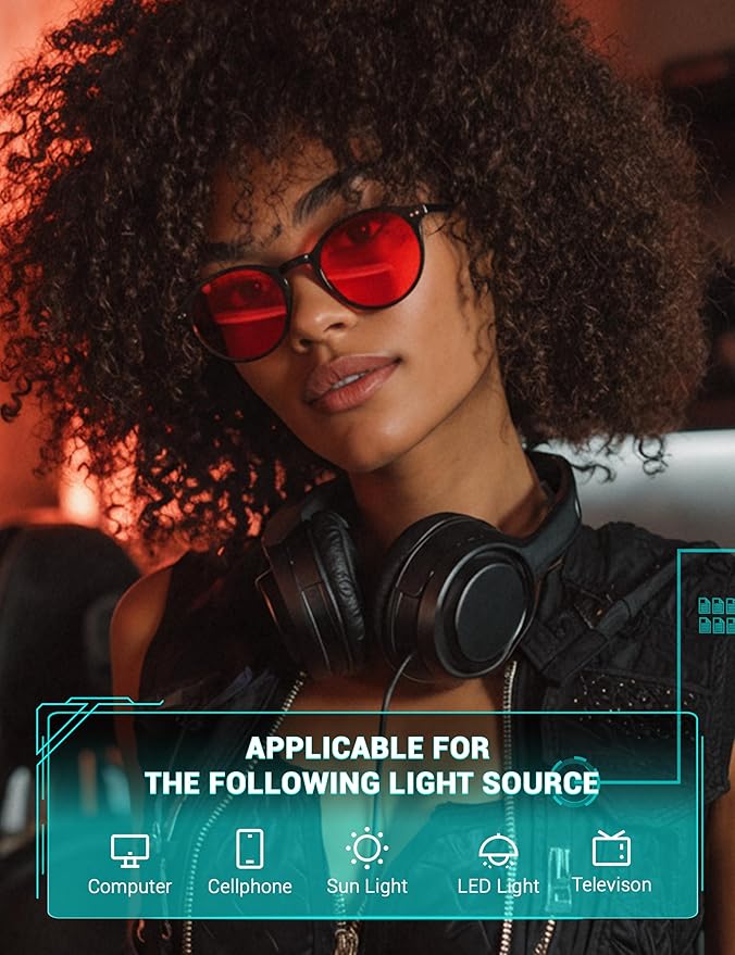 - Red Lens Blue Light Blocking – Specialized red-tinted lenses filter high-energy blue and green light from digital screens, supporting a more comfortable viewing experience