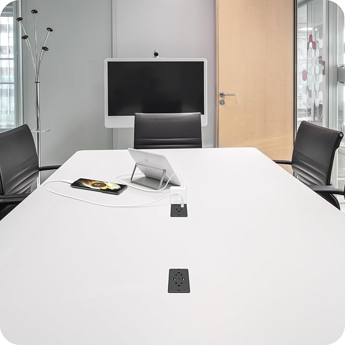 - Recessed Outlet Strip with Flat Plug: The 45 degree flat plug saves space and provides space for other plugs to share the socket Ideal for tight spaces such as behind furniture. It has all the power a person would reasonably need at their desk or work station, create less clutter and have a more organized desk area, in use and that it is not taking up floor space or counter space.