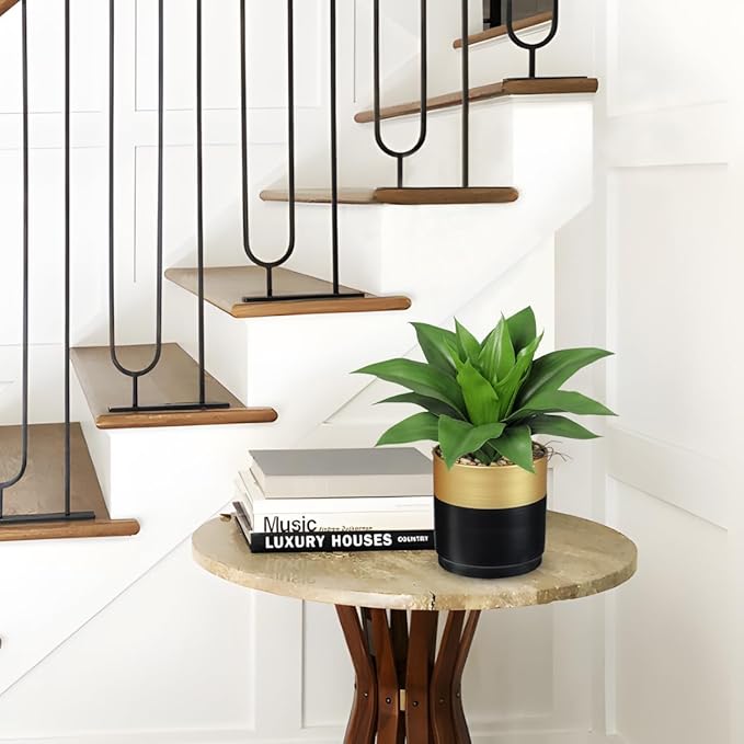 - MODERN MATTE BLACK & GOLD POT DESIGN: A bold yet elegant combination—sleek black contrasts with metallic gold, creating a high-end decorative accent. The included natural-look pebbles complete the arrangement, adding texture and authenticity.