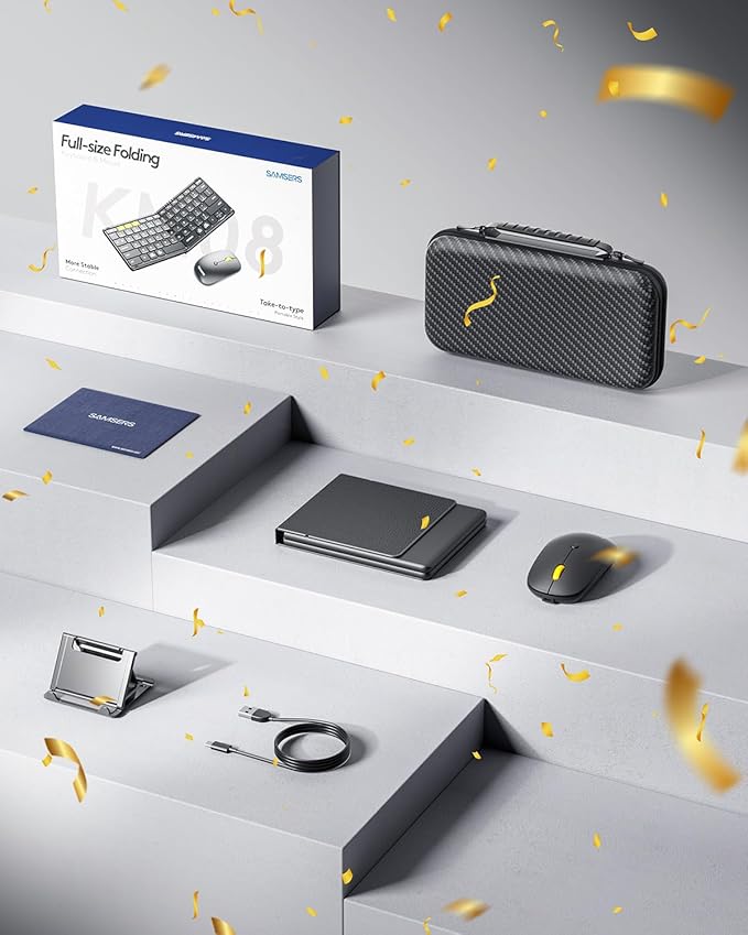 - 【Lightweight Case & Big Convenience】 Samsers Foldable Keyboard and Mouse with Case, weighs only 21 ounces. Sturdy and stylish case organizes all your essentials neatly, keep your foldable keyboard and mouse, phone holder, charging cable in place and deliver a quick access whenever you want! Not just a keyboard, but a travel solution!