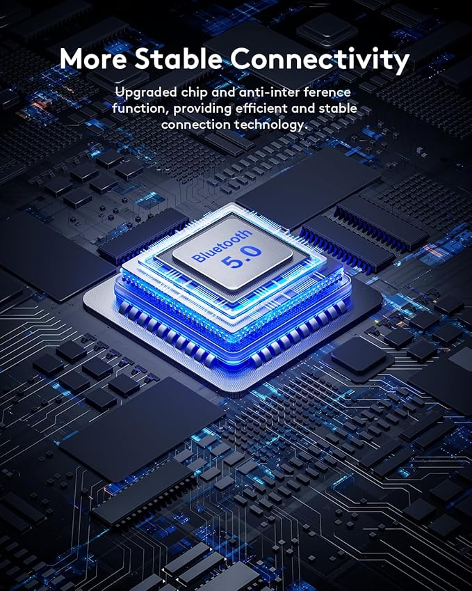 - 【Connect Up to 3 Devices】Pair up to 3 devices simultaneously. One tiny 2.4G USB receiver+Bluetooth 5.0 X 2. No lagging within 33 feet of operation distance. Large, well-spaced keys give your hands plenty of room to type comfortably. Responsive buttons provides soft click with less noise, Provide you a seamless typing experience that will keep you focused on your work!