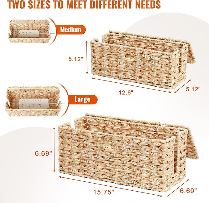 - šš±šŖš®š¢š¬š¢šš ššš§šš¦ššš: The 2 pack cable organizer boxes is made of iron frame and hand woven rattan wicker, which is sturdy and durable; Large size: 15.75x6.69x6.69inch, medium size: 12.6x5.12x5.12inch, to help transformed your workspace, making everything look neat and organized.