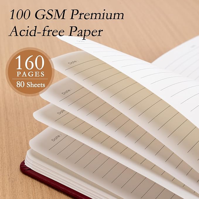 - FSC-certified eco-friendly paper: 100GSM acid-free thick paper prevents ink bleed-through, compatible with various pens (e.g., fountain pens, ballpoint pens). Light ivory-colored pages reduce eye strain for comfortable extended writing.