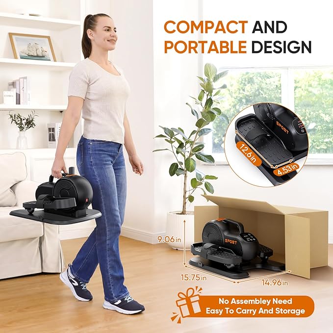 - 【Ultra-Silent & Smooth Operation】This latest Dripex motorized elliptical exercise machine employs the mute system to achieve ultra-silent and smooth operation with noise levels below 15dB. The adoption of these technologies makes the mini elliptical an ideal choice for home fitness enthusiasts or office workers, allowing users to enjoy an efficient workout experience in a quiet and comfortable environment without disturbing others' rest or work