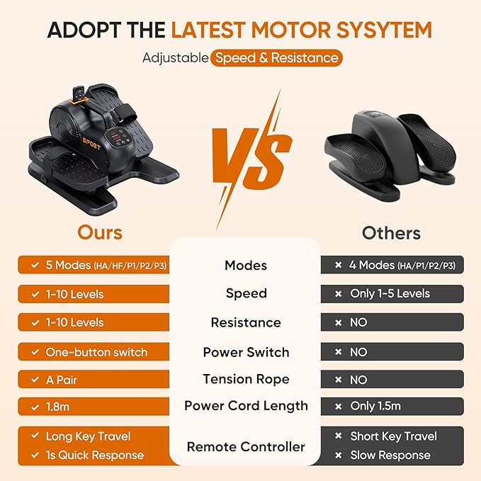 - 【3-IN-1 with 5 Modes】This electric seated pedal exerciser offers 2 manual modes: HA (with 10 levels of speed) and HF (with 10 levels of resistance), catering to your diverse needs. It also provides 3 automatic modes (P1, P2, and P3), which are preset programs designed to help you gradually adapt to your workout routine. These automatic modes do not allow adjustments to time, speed, or direction