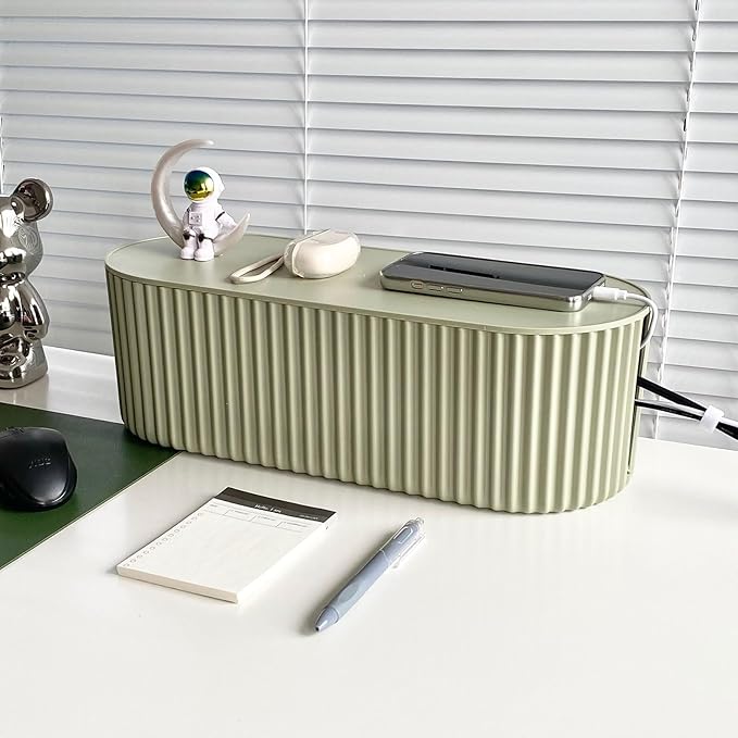 Green Cable Management Box, Power Strips Hider Cover Under TV and Desk for Home, Office, School Use, Plastic Surge Protector Cover on Floor, Electronics Cord Bin with Lid (Large)