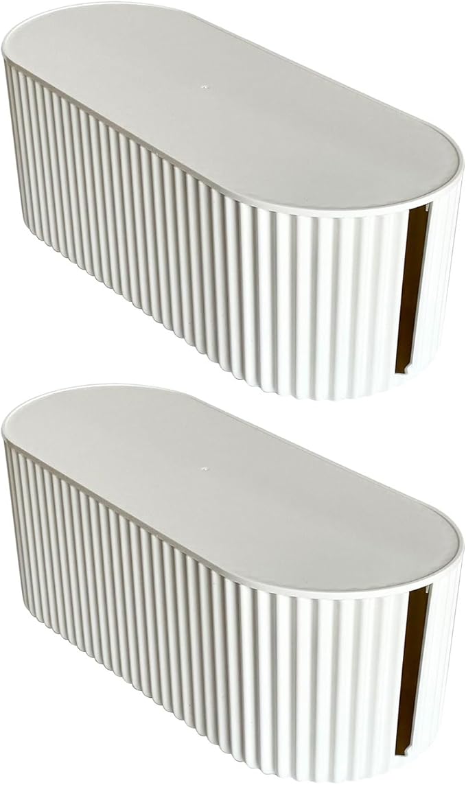 2 Pack White Cable Management Box, Plastic Cord Organizer Box Under Desk, Power Strips Hider for Home Office, Phone Charger, Electronics Wires, Surge Protector Cover Bin (Large)