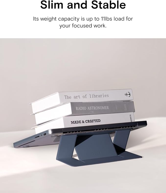 - [Reliably Strong MacBook Stand] It's built with unique PU and fiber glass materials, ensuring that it can hold a laptop stably with its small body. 11lbs is its weight bearing, covering most macbook and laptops without vents.