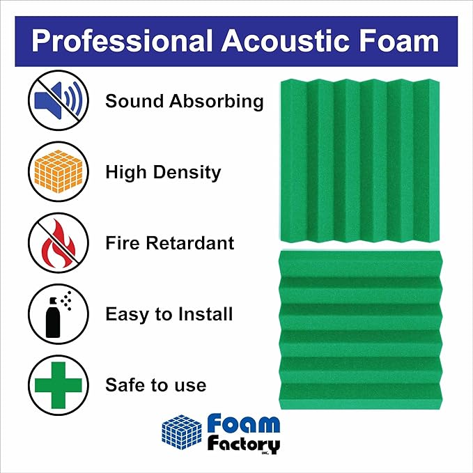 - [Improve Audio Clarity] Made from 1.5 lb high-density polyurethane foam, Foam Factory acoustic wall panels enhance sound absorption, reducing disruptive flutter echoes, waves and reverberations for clearer audio recording and playback, elevating your creative and professional environments.