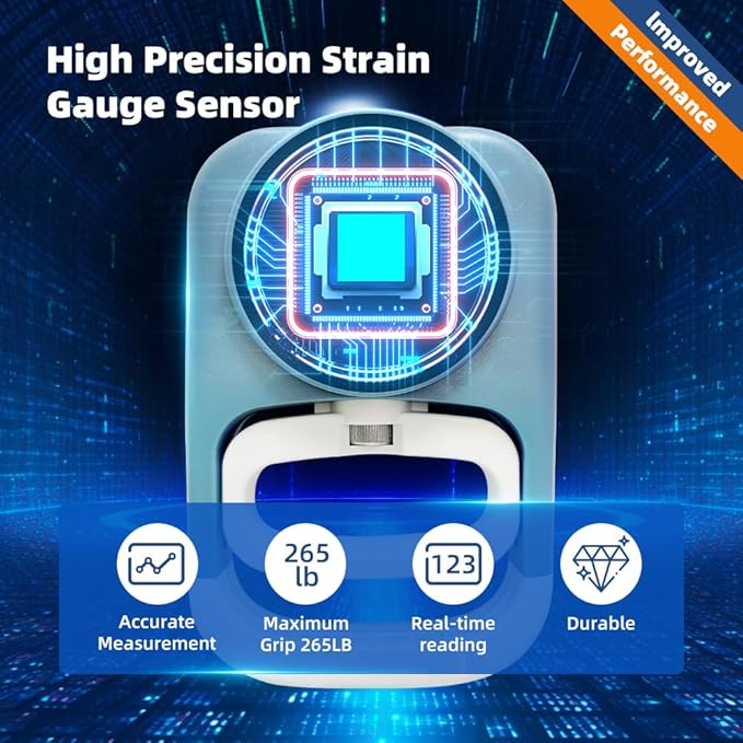 - 𝐏𝐫𝐞𝐜𝐢𝐬𝐢𝐨𝐧 𝐆𝐫𝐢𝐩 𝐌𝐞𝐚𝐬𝐮𝐫𝐞𝐦𝐞𝐧𝐭: Enhance your training with our hand gripper, measuring grip strength up to 265 lbs (120 kg). With a high-precision sensor, grip strength trainer tracks your grip strength improvements