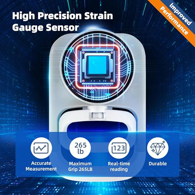 - 𝐏𝐫𝐞𝐜𝐢𝐬𝐢𝐨𝐧 𝐆𝐫𝐢𝐩 𝐌𝐞𝐚𝐬𝐮𝐫𝐞𝐦𝐞𝐧𝐭: Enhance your training with our hand gripper, measuring grip strength up to 265 lbs (120 kg). With a high-precision sensor, grip strength trainer tracks your grip strength improvements