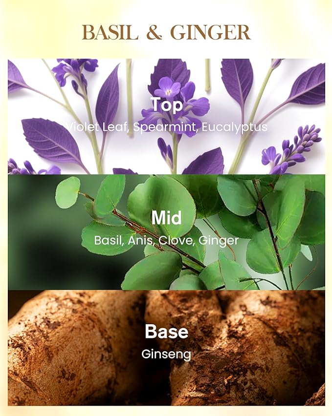 M&SENSE Basil Ginger Scented Candle 35oz 150H Burn Time Long Lasting, 3-Wick Natural Aromatherapy Candle Highly Scented, Home Fragrance Housewarming Gifts