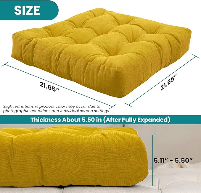 - ✨VERSATILE & MULTI-PURPOSE: Ideal for meditation, as a floor chair pillow, or as a cozy reading nook, our large square cushion adapts to any space. Its sleek, solid yellow color complements a variety of decor styles, blending seamlessly with your home’s aesthetic.