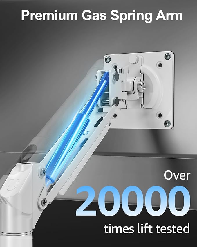 - Universal Compatibility: The gas spring monitor arm provides upgraded loading capacity and can securely and easily hold monitors 17,19,21.5,22,23,24,27,32 inches and supports 4.4-22lbs monitors (not for curved monitor over 22lbs). Compatible with VESA 75x75mm and 100x100mm.