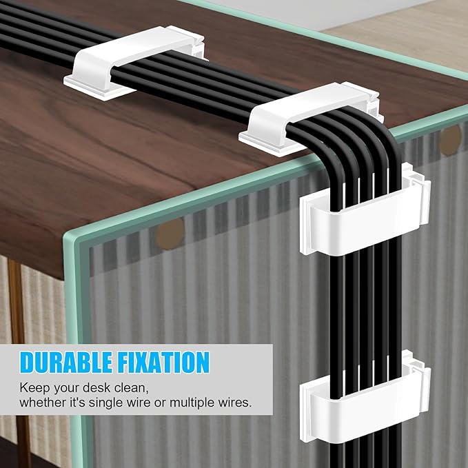 XHF 50 PCS Self Adhesive Cable Clips(L) White,Wire Clips Cable Management Wire Organizer Cord Holder for Under Desk, Car, Wall, TV PC Ethernet Cable