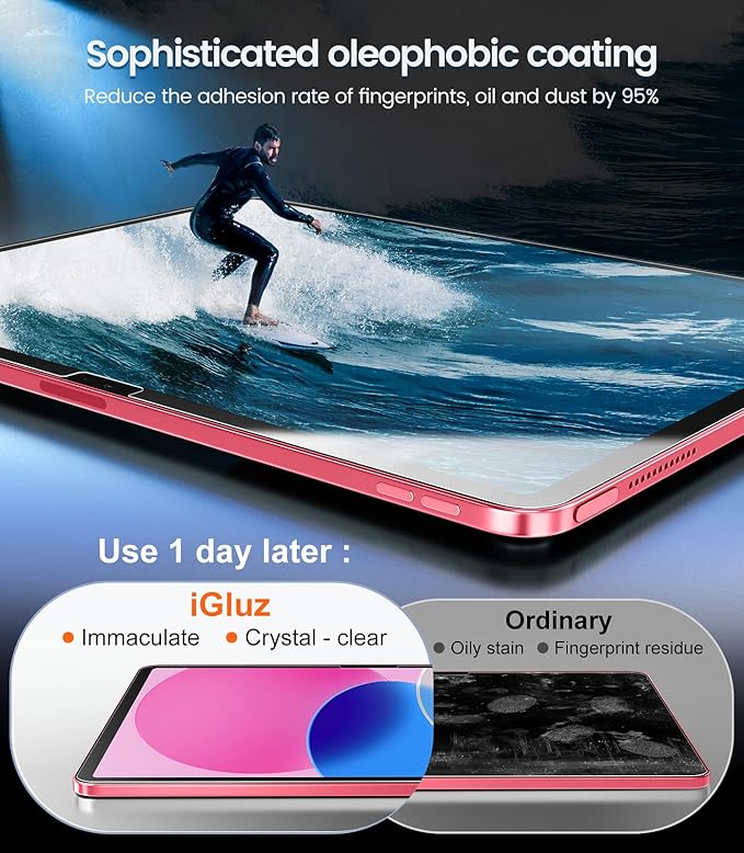 - 【Strong Anti-Fingerprints】Electroplated oleo-hydrophobic layer can effectively reduce sweat, stains and fingerprints left during daily use, making your screen very easy to clean. And, it makes the touch feel dryer and smoother, without poor operation or blocking, enhancing the surface touch experience.