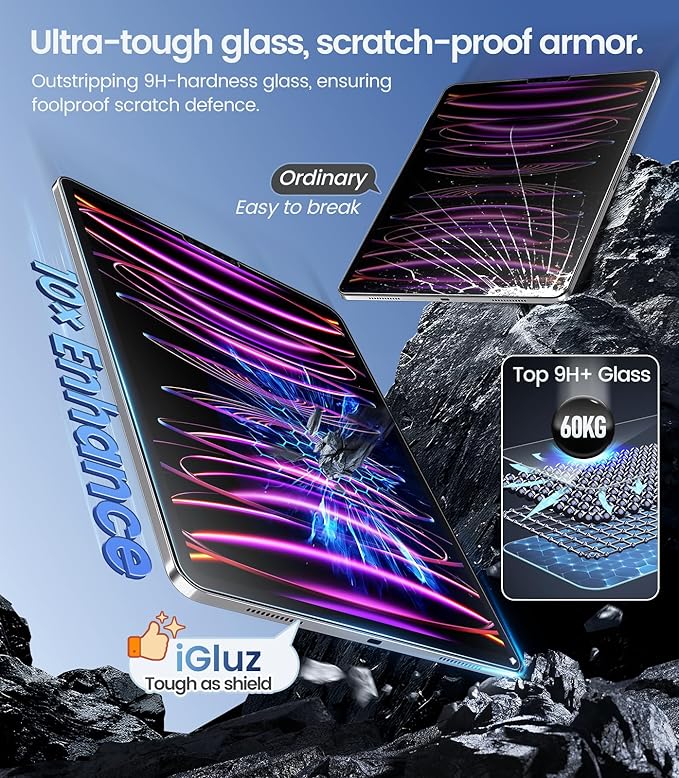 - 【Military Grade Shockproof and Shatterproof】9H hardness tempered glass can effectively fight against external shocks and fully protect your iPad from collisions, drops, scratches and other injuries.Effectively withstand impacts from heavy scratches and abrasions.