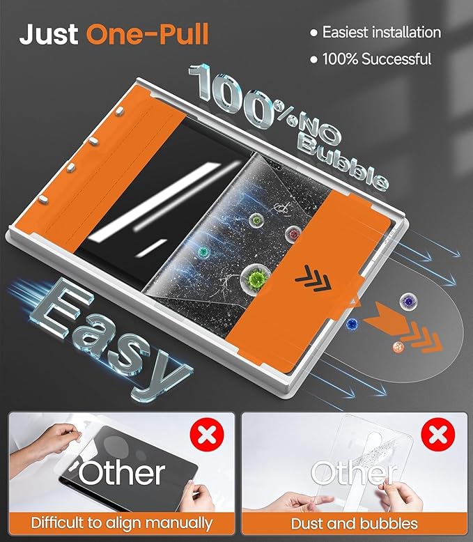 - 【One Touch Installation】Equipped with an innovative automatic alignment kit.Easily and perfectly aligned without any experience.Quick installation, no bubbles, not easy to fall off.Comes with detailed installation step-by-step instructions and a specific operation video.