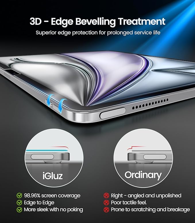 iGluz 2 Pack iPad Air 11-inch Screen Protector with M3/M2 2025/2024 (7th/6th Gen.) 9H+ Tempered Glass Screen Protector with Easy-Install Box,Apple Pencil Compatible,HD Clarity,Scratch Resistant