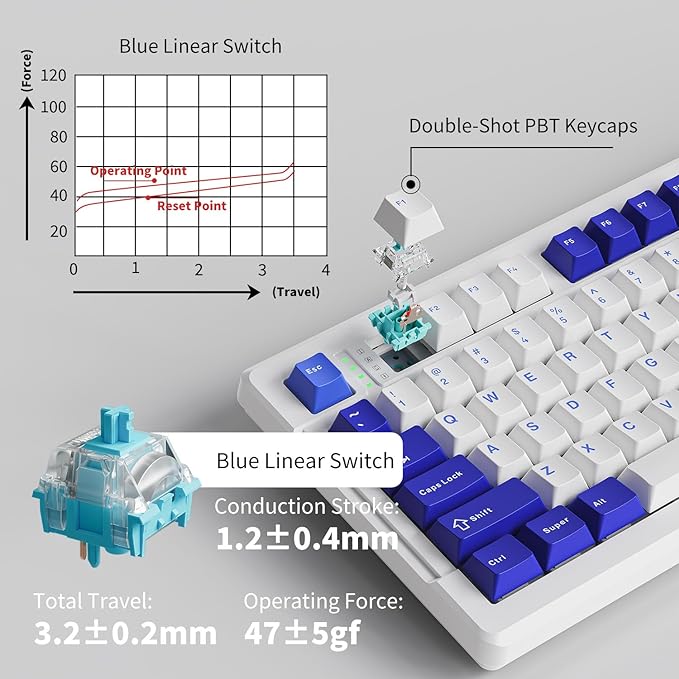 EWEADN X99 Wireless Mechanical Keyboard - 99 Keys, Three Mode Connectivity- BT5.0/2.4GHz/USB-C, Hot-Swappable PCB, Gasket Mount, 8000mAh Battery, PBT Double-Shot Keycaps,Blue and White, Linear