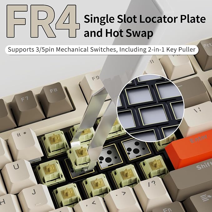 - 【Other Well-Designed Features】①Oil-resistant PBT keycap OEM profile to prevent long-term dirt accumulation; ②Factory pre-lubricated linear switches, providing fast typing and quick response, quieter and smoother, suitable for gaming and typing; ③Anti-ghosting, All keys are non-conflict NKRO (N-Key Rollover); ④Two-level adjustable stand provides you with a more comfortable typing angle.