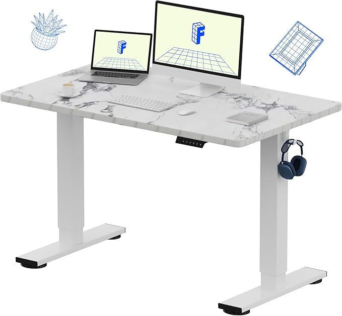 FLEXISPOT EN1 One-Piece Standing Desk 48 x 30 Inches Height Adjustable Electric Desk Sit Stand Desk Home Office Desks (White Frame + Marble Gray Top, 2 Packages)