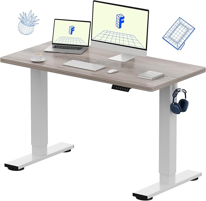 FLEXISPOT EN1 One-Piece Standing Desk 48 x 24 Inches Height Adjustable Electric Desk Sit Stand Desk Home Office Desks (White Frame + Gray Wood Grain Top, 2 Packages)