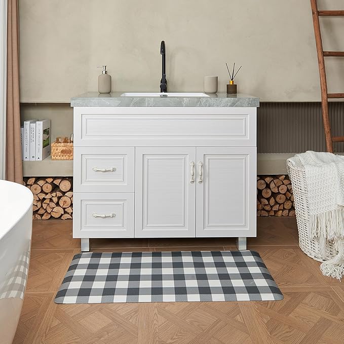 Anti Fatigue Kitchen Rugs Farmhouse Kitchen Mats for Floor,Cushioned Non-Slip Ergonomic Comfort Rug Standing Mat for Kitchen,Doing Dishes,Floor,Home,Office,Laundry,Plaid Black,17.3"x39"