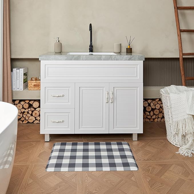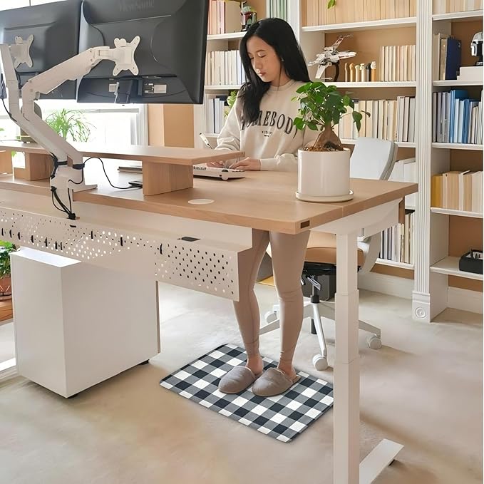 Anti Fatigue Kitchen Rugs Farmhouse Kitchen Mats for Floor,Cushioned Non-Slip Waterproof Ergonomic Comfort Rug Standing Mat for Kitchen,Floor,Home,Office,Sink,Laundry,Plaid Black,17.3"x 28"