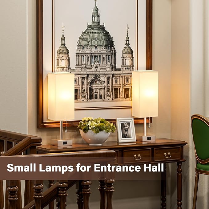 - 4. Plug and Play Chic Bedroom Lamps Set: Package included 2pcs non-flicker FREE E26 led light bulb (worth $15), 2pcs install-free square cream flaxen fabric shade, 2pcs stable lamp body and classic black metal base. Put all together for a minimalism classic lamp is really perfect to decorate anywhere of your house. An ideal tableside lamp for bedroom, guest room, living room, study room, kids room, college dorm room for girls and boys, office room, desk, etc