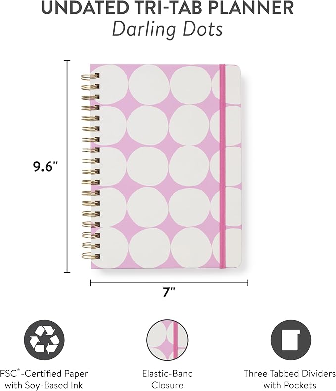 Orange Circle Studio Undated Tri-Tab Academic Planner 2026, Darling Dots, Daily Notebook Journal, Cute Weekly and Monthly Calendar with Pocket, Stickers, Lined Pages for To Do lists and Planning