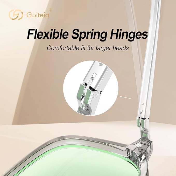 - š Super Comfortable Frame:Goiteia blue light blocking glasses feature a lightweight, durable TR90 frame with premium metal temples for a refined look. Flexible spring hinges ensure a comfortable fit, even for larger heads or wider faces, adapting to all-day wear with ease.