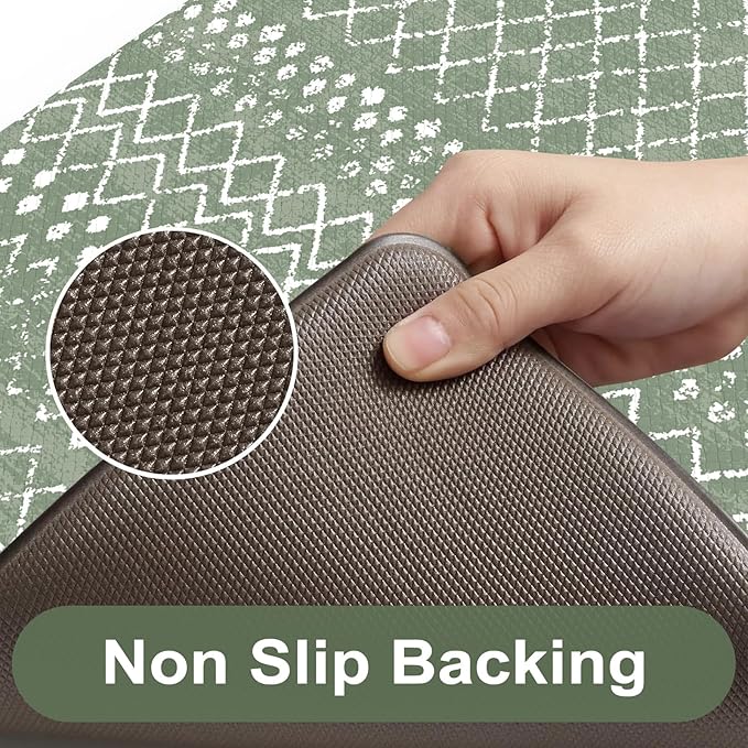 KIMODE Anti Fatigue Kitchen Mats for Floor, Boho Kitchen Rugs Sets of 2, Cushioned Kitchen Floor Mats, Comfort Standing Mat for Sink Laundry Office Desk Green 17"x59"+17"x29"