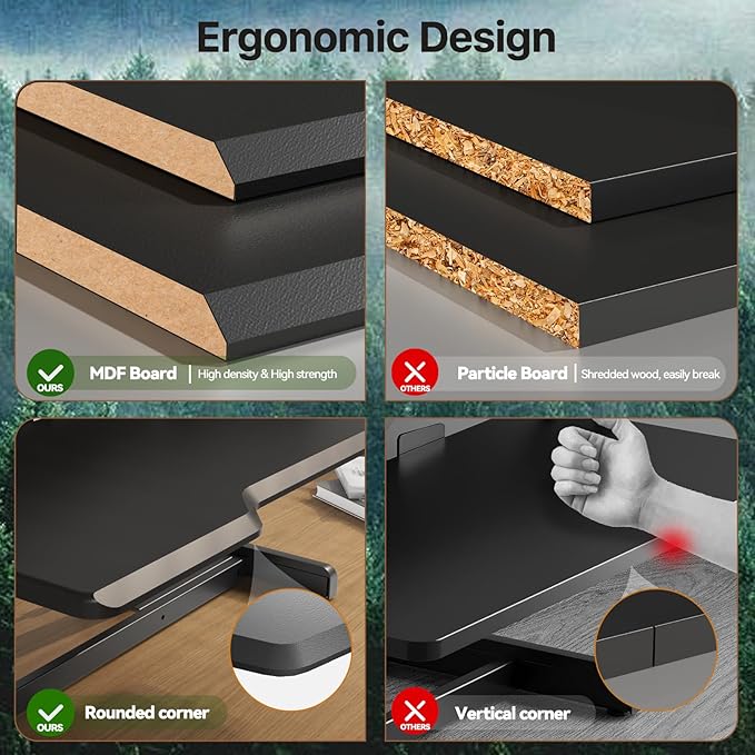 - Ergonomic Design: The curved edge of the keyboard tray provides you better posture when sit or stand closer to the desk. Above all, height adjustable desk converter allows you to find healthy balance between sitting or standing