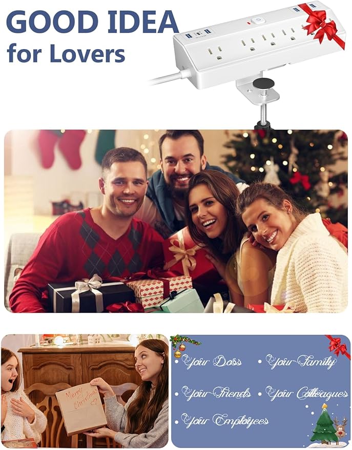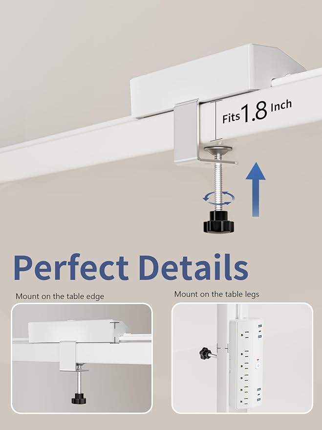 - 【Easy to install】- Desktop surge protector power strip with USB ports is very easy to mount, you don't need to drill holes or purchase any additional tools, just fix the clamp to the table, and turn the button at the bottom to complete the installation. (Features a 180-degree swivel clip that fits desks up to 1.8 inches thick.)