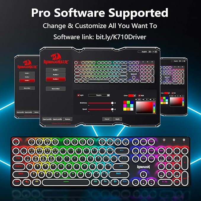 - š£šæš¼ š¦š¼š³ššš®šæš² š¦šš½š½š¼šæšš²š± - Expand your options using the available software to design your own new modes and effects. Macros with different keybindings or shortcuts for more efficient work and gaming. Software link: bit.ly/K710WDriver