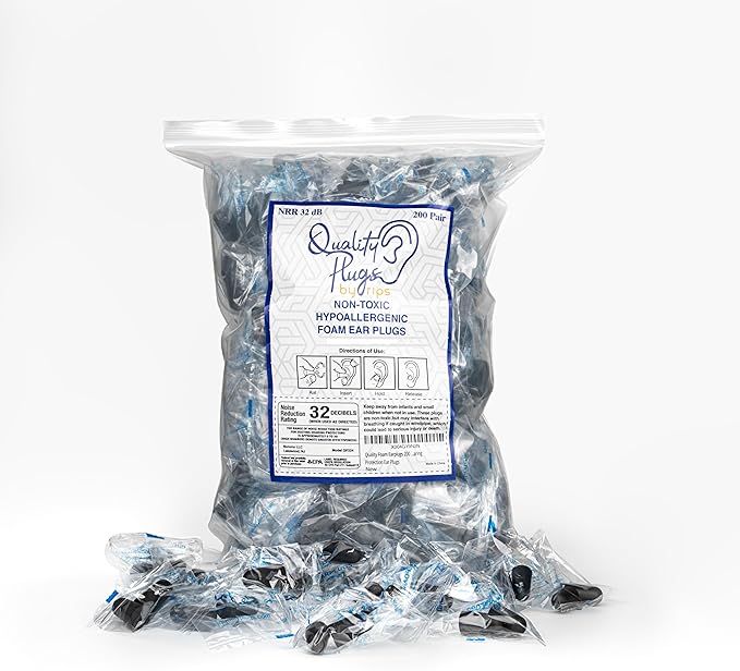 Quality Foam Earplugs 200 Pair - 32dB Noise Cancelling Soft High Decibel Ear Plugs for Noise Reduction Ear Protection Construction Loud Music Shooting Guns Work Safety Hearing Protection Ear Plugs