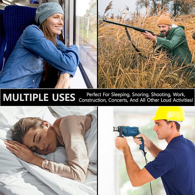 - NOISE CANCELLING EAR PLUGS - Provides max noise reduction for The Peace, Quiet, and Sleep You Deserve! Perfect Ear Plugs For Shooting, Sleeping, Hunting, Work, Travel, Concerts, Construction, And All Other Loud Activities! NRR: 32dB/SNR: 35dB.