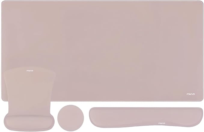 MOSISO Keyboard Mouse Pad Set, Large Gaming Mousepad&Keyboard Wrist Rest&Mouse Wrist Rest&Coaster, Ergonomic Non-Slip Mousepad&Easy Typing Cushion with Memory Foam for Home Office, Taupe Brown