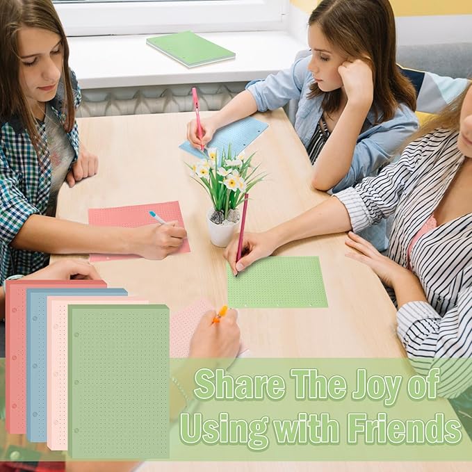 200 Sheets Half Letter 3 Hole Notebook Dot Grid Paper 5-1/2 x 8-1/2 Loose Leaf Paper for Mini Binder Colored Dotted Graph Paper Bulk Dotted Paper Refills for Planner Inserts for School Office