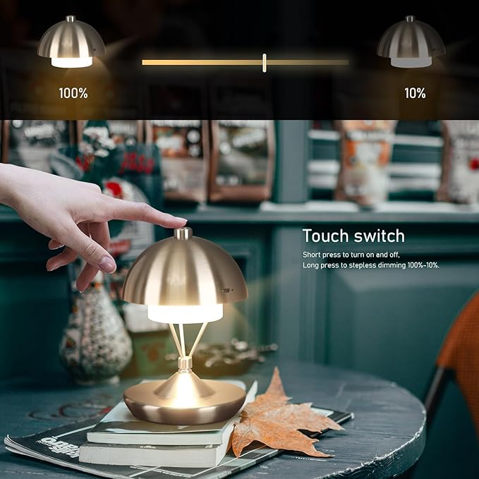 - Dimmable Dining Table Light: Built in 3W energy-saving LED chip, non flickering LED light source, short press to turm on and off, long press to stepless dimming 100% -10%. It has a USB-C charging port and can be fully charged in 4-6 hours, depending on usage