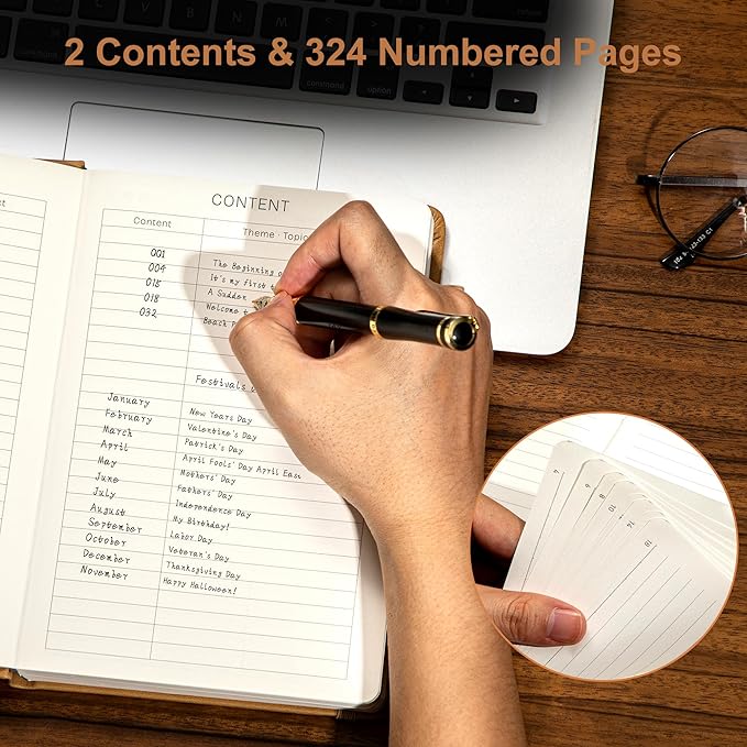 - 【Upgrade Practical Functions】 -- The journal has portable size, 5.7*8.5 inches, can be easily put in backpack. We've added page numbers and a table of contents page for you to keep track of highlights and for quick reference. Pen holders keep your pens from falling out.