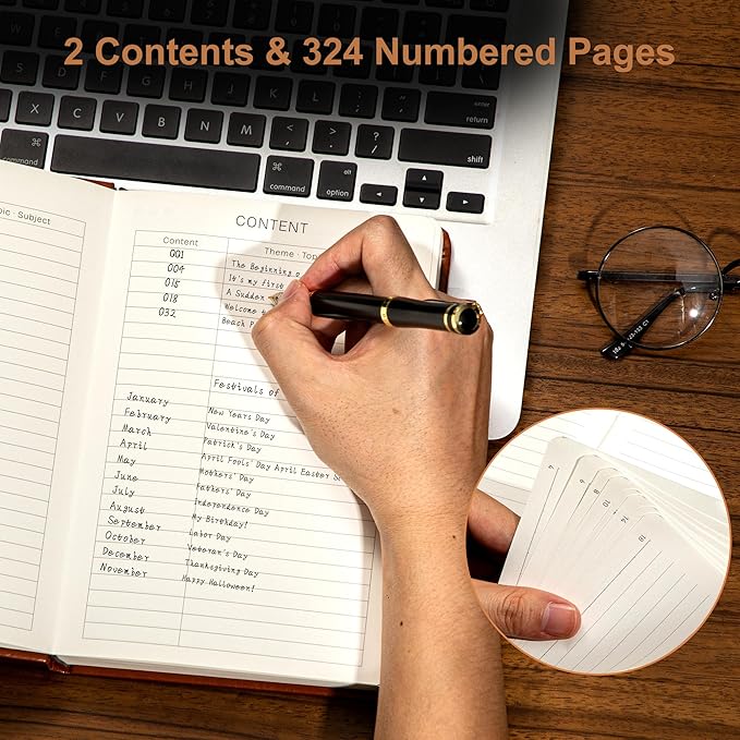 - 【Upgrade Practical Functions】 -- The journal has portable size, 5.7*8.5 inches, can be easily put in backpack. We've added page numbers and a table of contents page for you to keep track of highlights and for quick reference. Pen holders keep your pens from falling out.