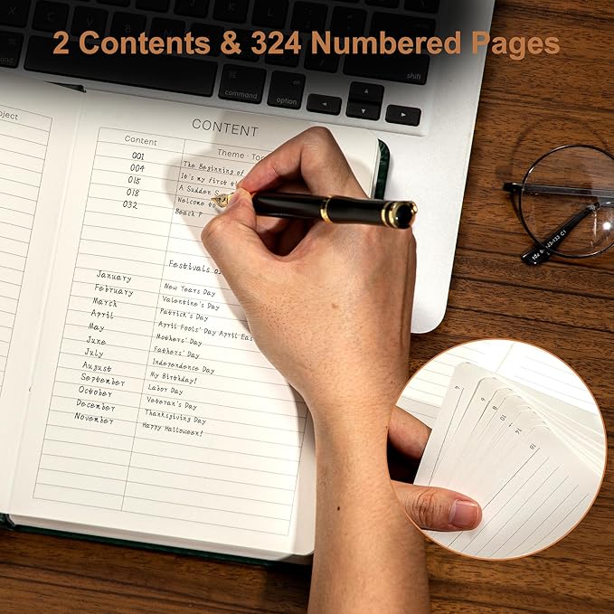 - 【Upgrade Practical Functions】 -- The journal has portable size, 5.7*8.5 inches, can be easily put in backpack. We've added page numbers and a table of contents page for you to keep track of highlights and for quick reference. Pen holders keep your pens from falling out.