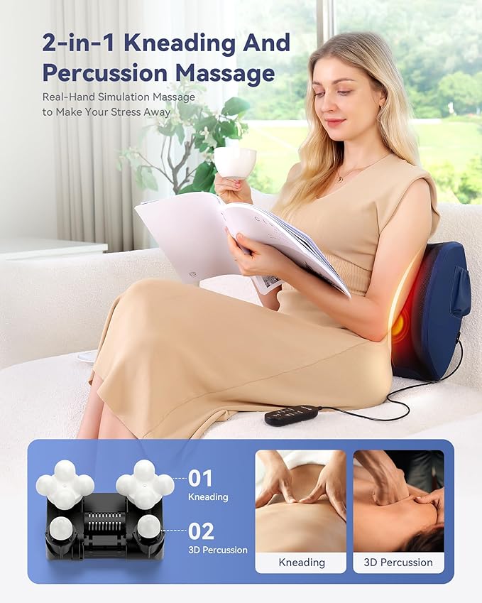 - 【Comfortable Back Massage 】Designed with 2 massage ways of kneading massage and percussion massage, the massager machine deep tissue can be a back massager to massage your lower back, comfortable and relaxed like real hand massage. Kneading & percussion can be controlled seperately.