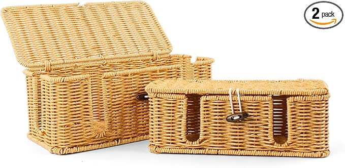 - Enhanced Safety& Protection - Our cable box is skillfully hand-woven with imitation rattan, improving breathability and safety.This design reduces potential dangers such as pets biting wires, children playing with wires, and tripping hazards,it ensures the safety of your family and home environment.