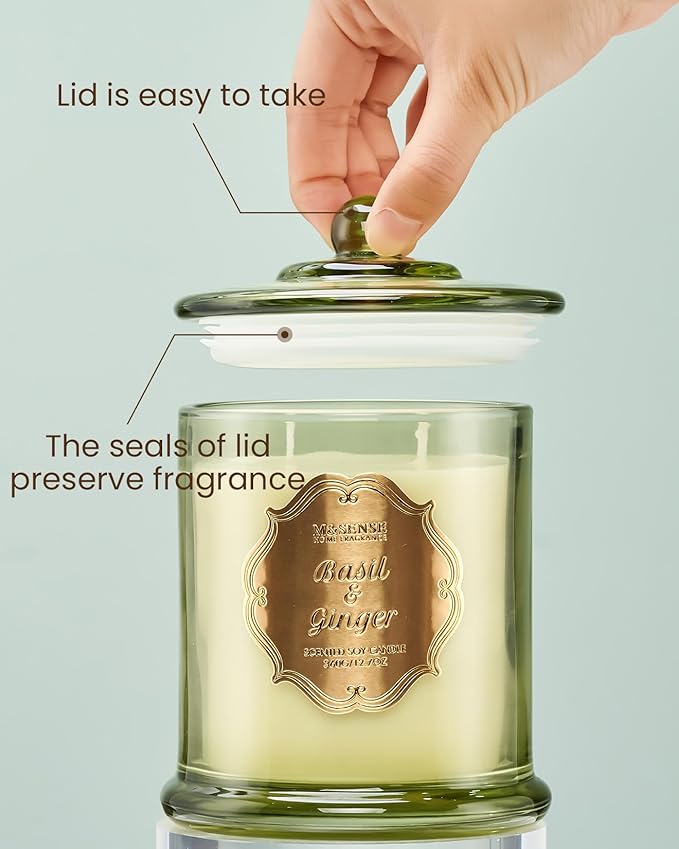 M&SENSE Basil Ginger Scented Candles, Plant-Based Soy Candles Non Toxic Soot-Free, Relaxing Air Purifying Stress Relief on Bathtub, 2 Wick 12.7oz Large Jar Candle 75 Hour Long Lasting, Father Gifts
