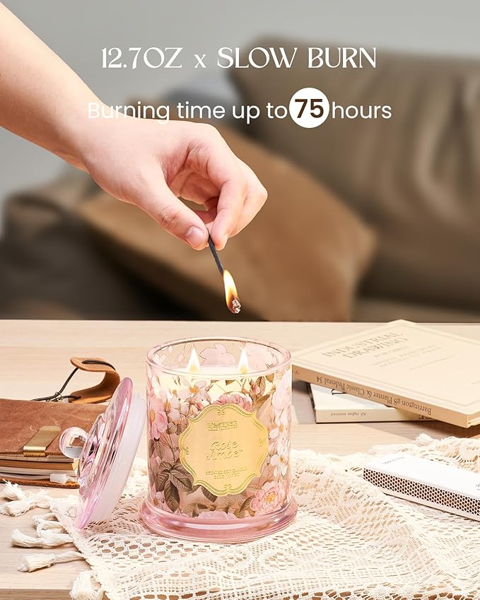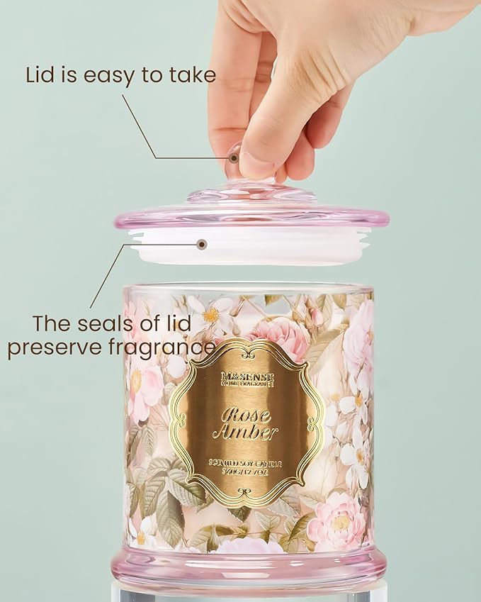 M&SENSE Rose Amber Candles for Home Scented, Organic Soy Candles Non Toxic, Double Wick 12.7oz Large Jar Candle 75 Hour Long Lasting Burn, Relaxing Aromatherapy Candle Gift for Women